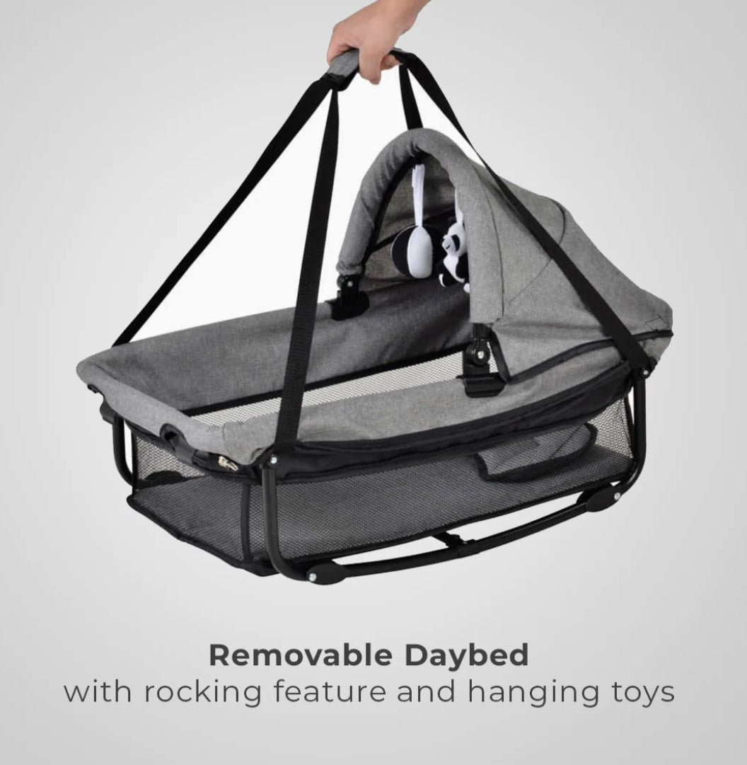 - Removable Daybed with rocking feature and hanging toys